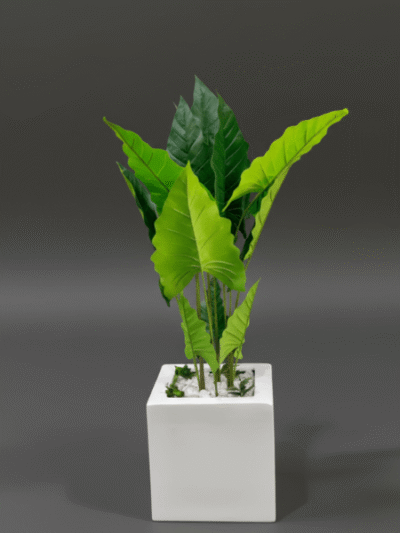 Premium Cocoyam Plant in Fiberglass Cube Vase – 150cm Tall Artificial Greenery Combo