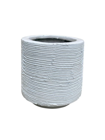 The sculptural form enhances plant displays while maintaining clean proportions.