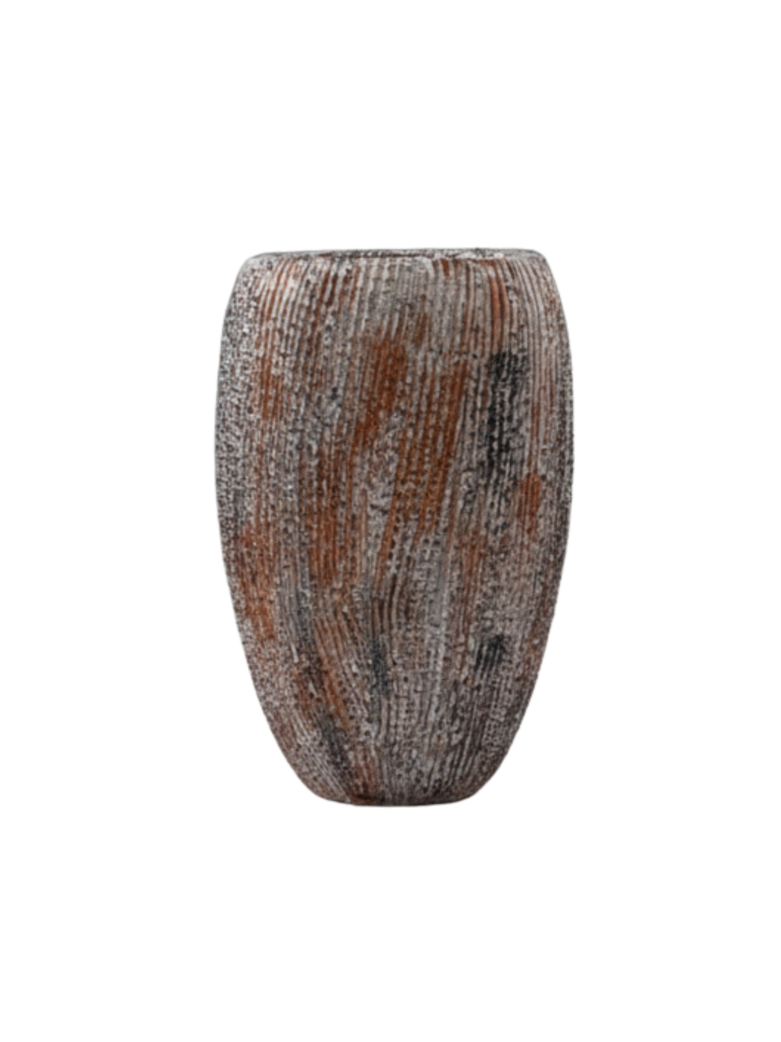 The rustic surface treatment enhances depth and visual interest. It works well with artificial plants, ornamental grasses, and compact shrubs. The design complements minimalist, contemporary, and traditional spaces.